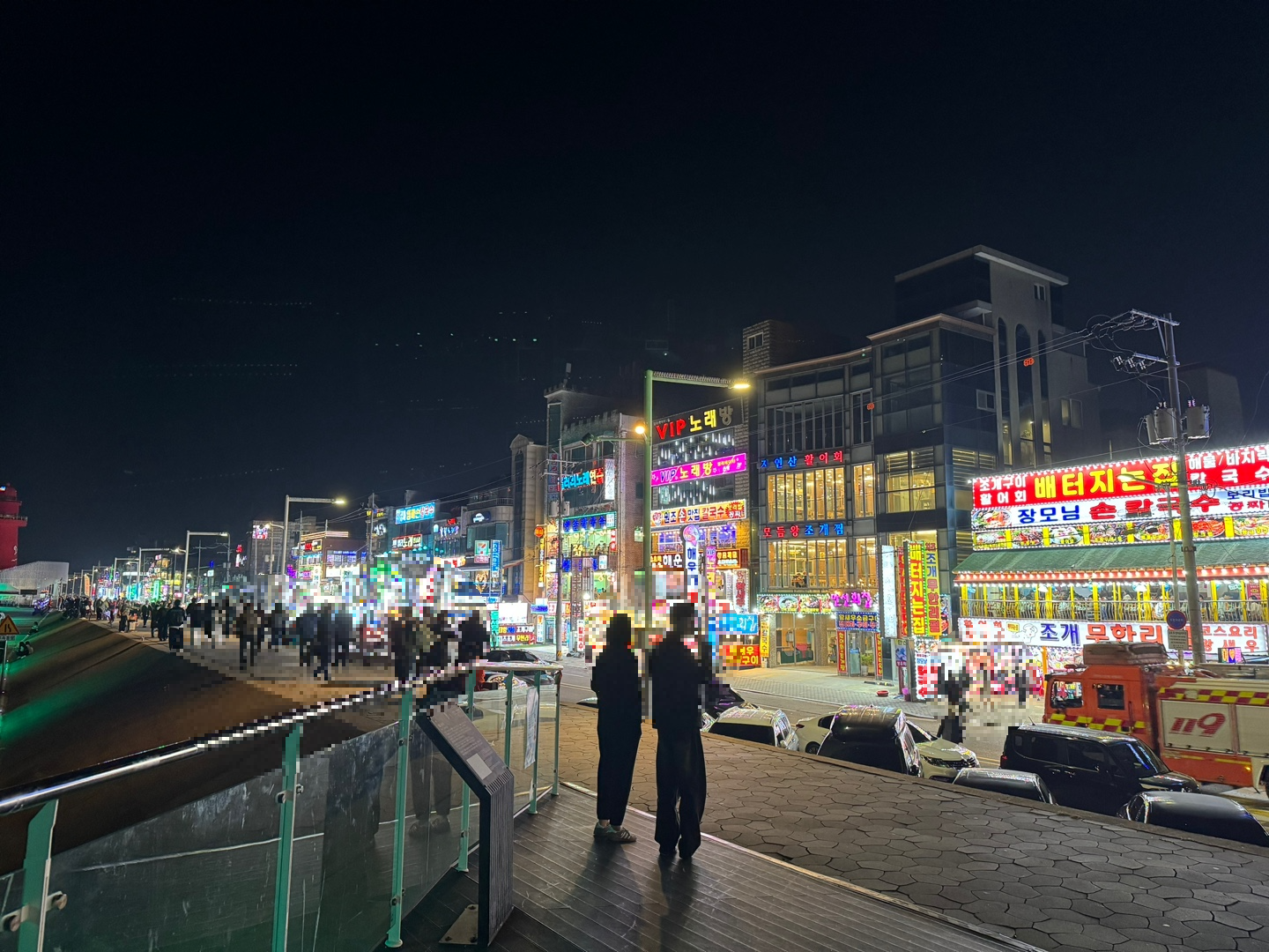 저 멀리 오이도 조개구이 거리가 보인다