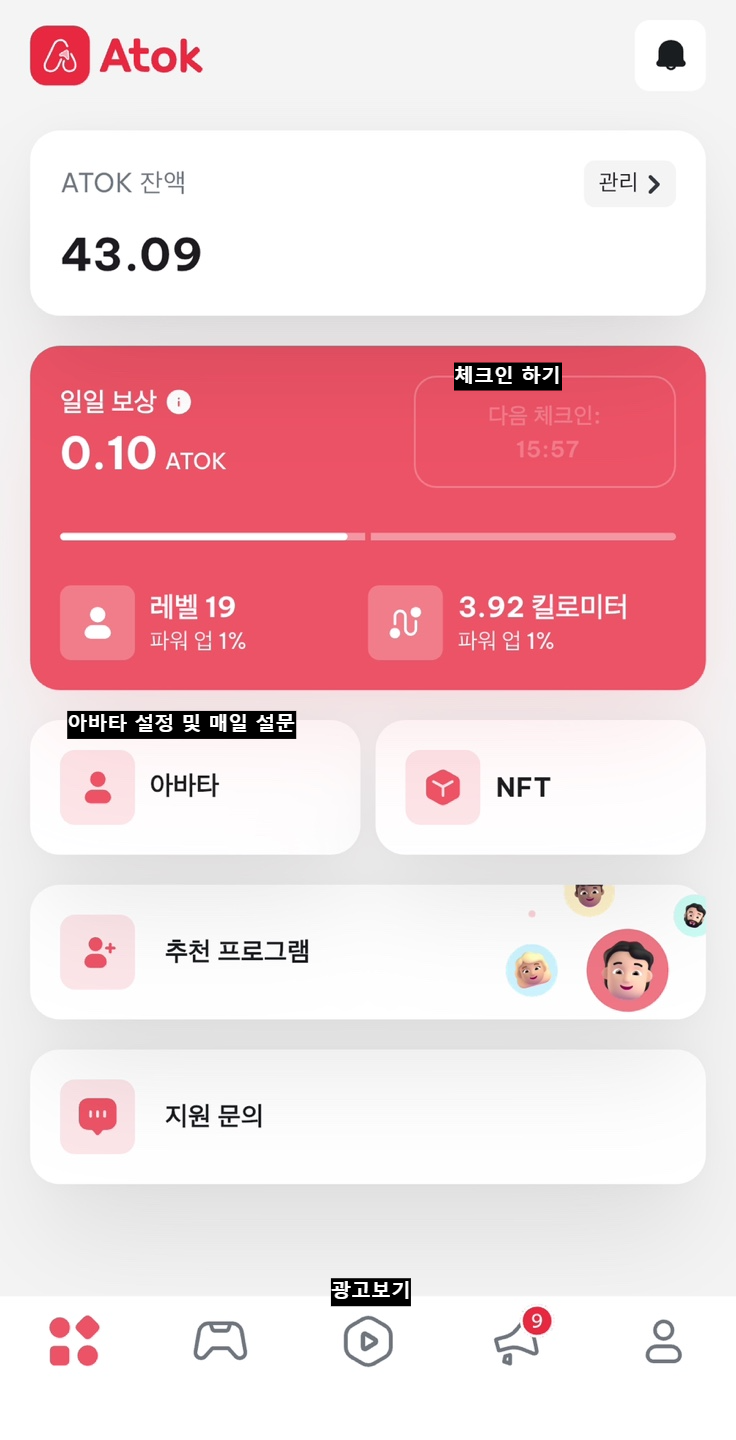 하루에 두번 체크인으로 코인을 얻습니다.