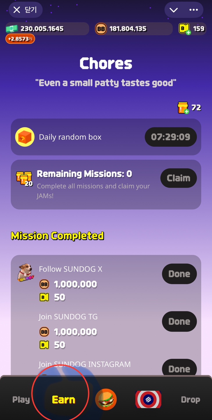 Earn 탭으로 들어가서 Mission을 진행해 주시면