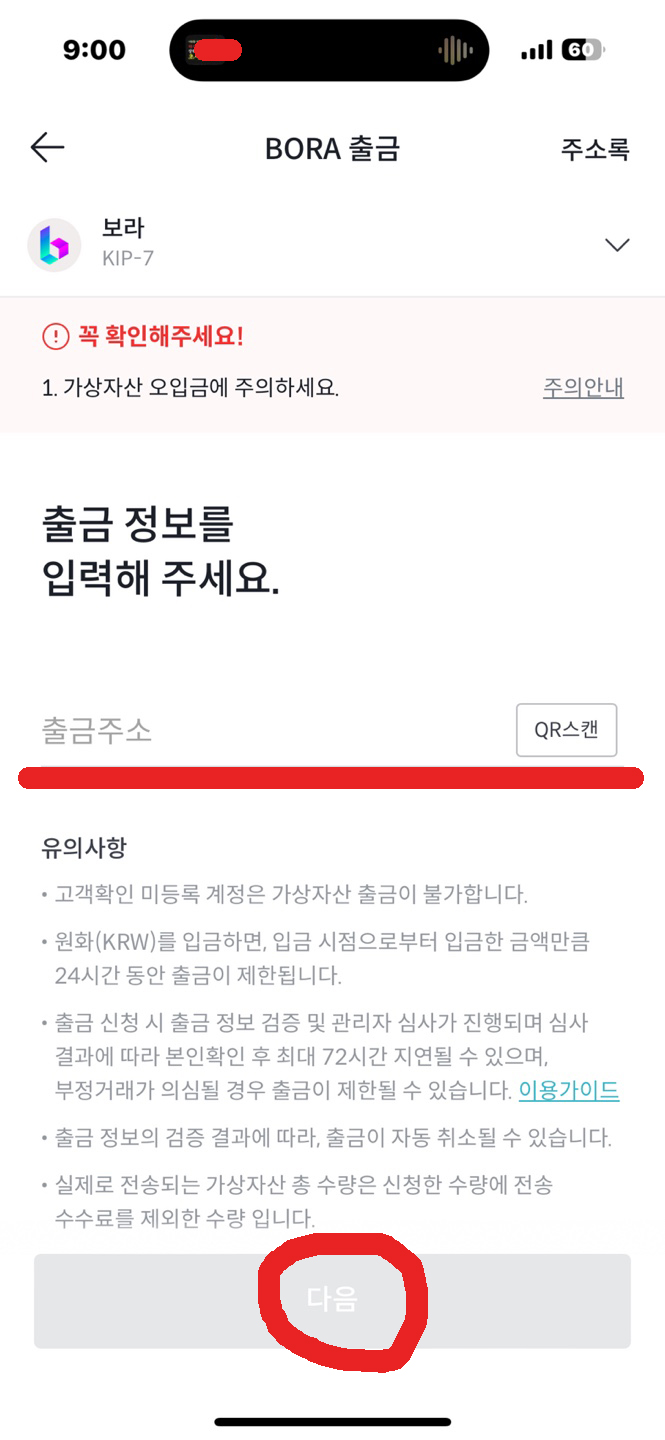 들어간 후 검색창에 내가 출금한 코인을 검색한다