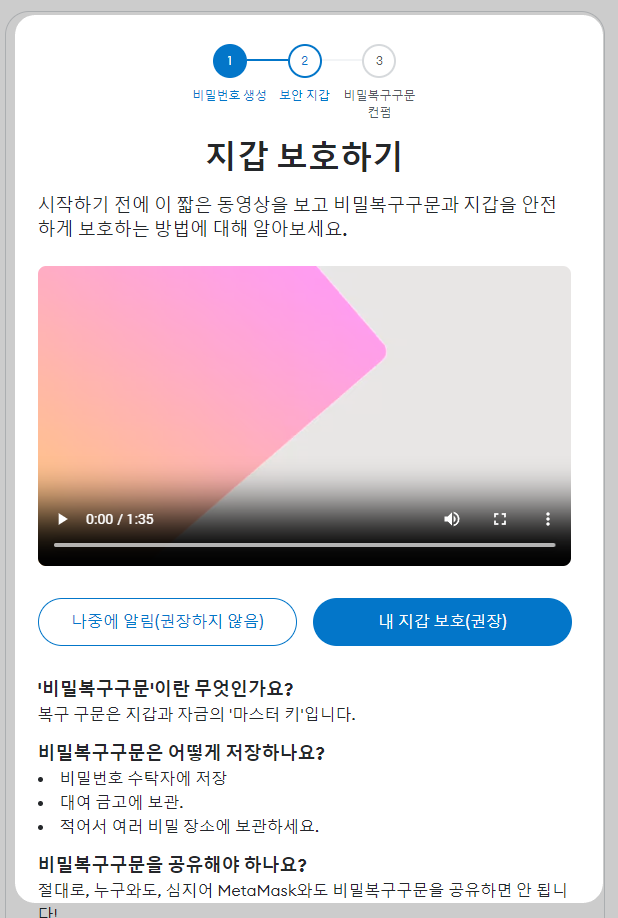 내 지갑 보호(권장) 클릭