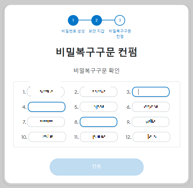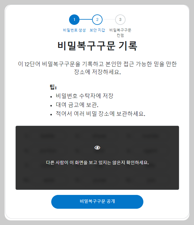 비밀복구구문 공개 버튼 클릭 후