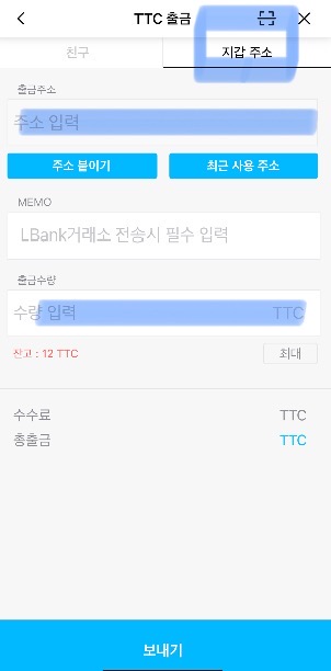 출금 주소와 출금 수량을 입력하고 보내기를 하면